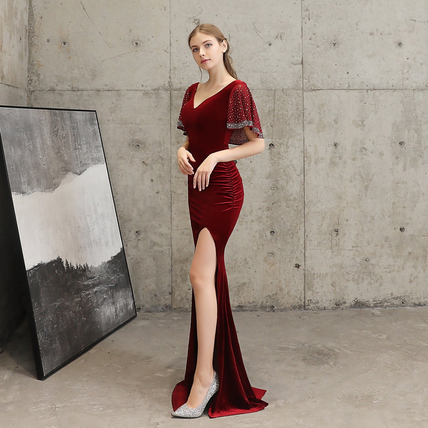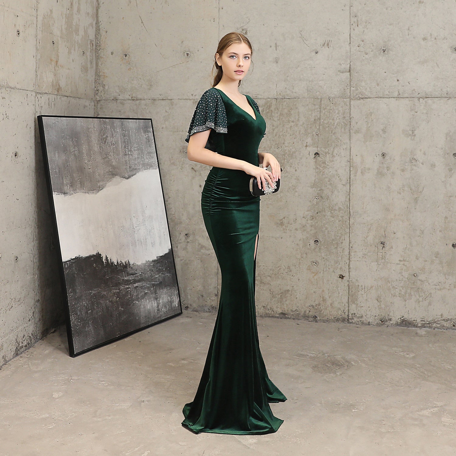 Velvet, Beading, with Mesh Rhinestones