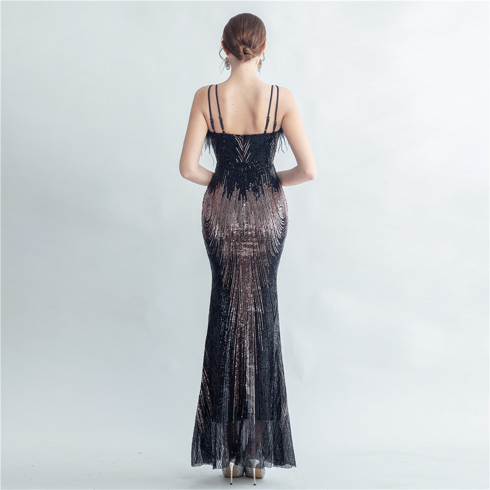 Ostrich Fur Halter Formal Dress
