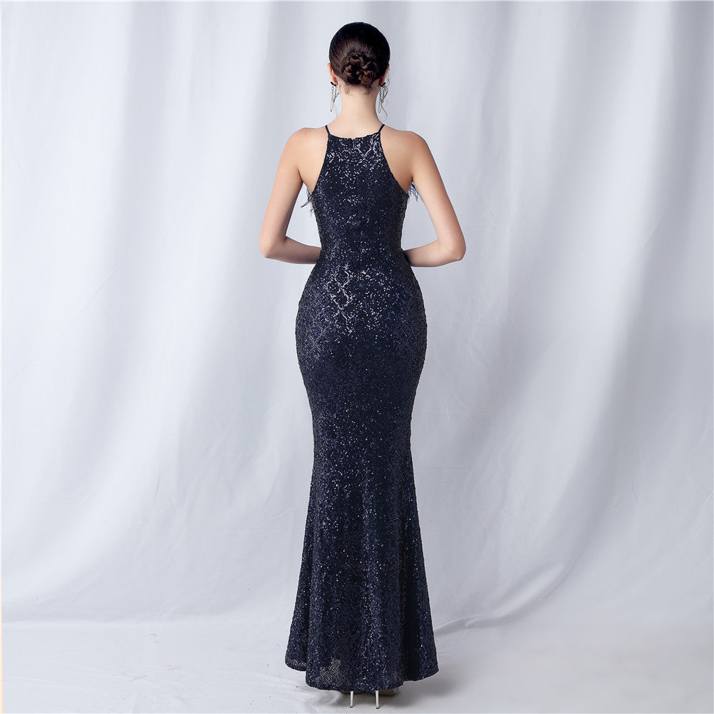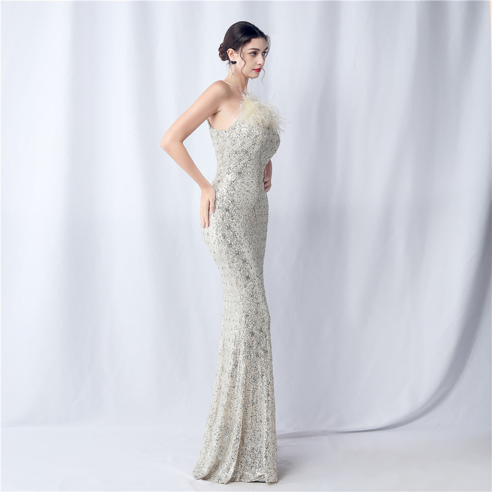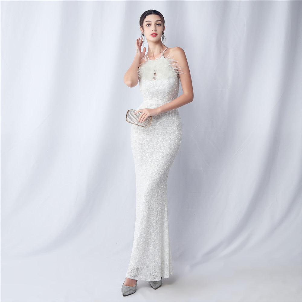 Camel hair and lattice beaded formal dresses