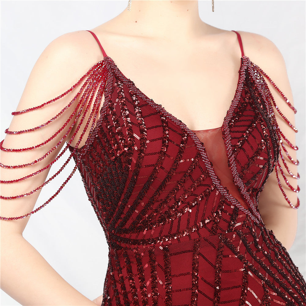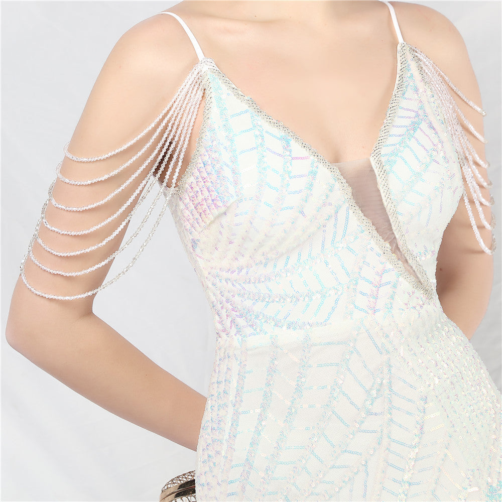 Sequins + Beads, with chest pads.