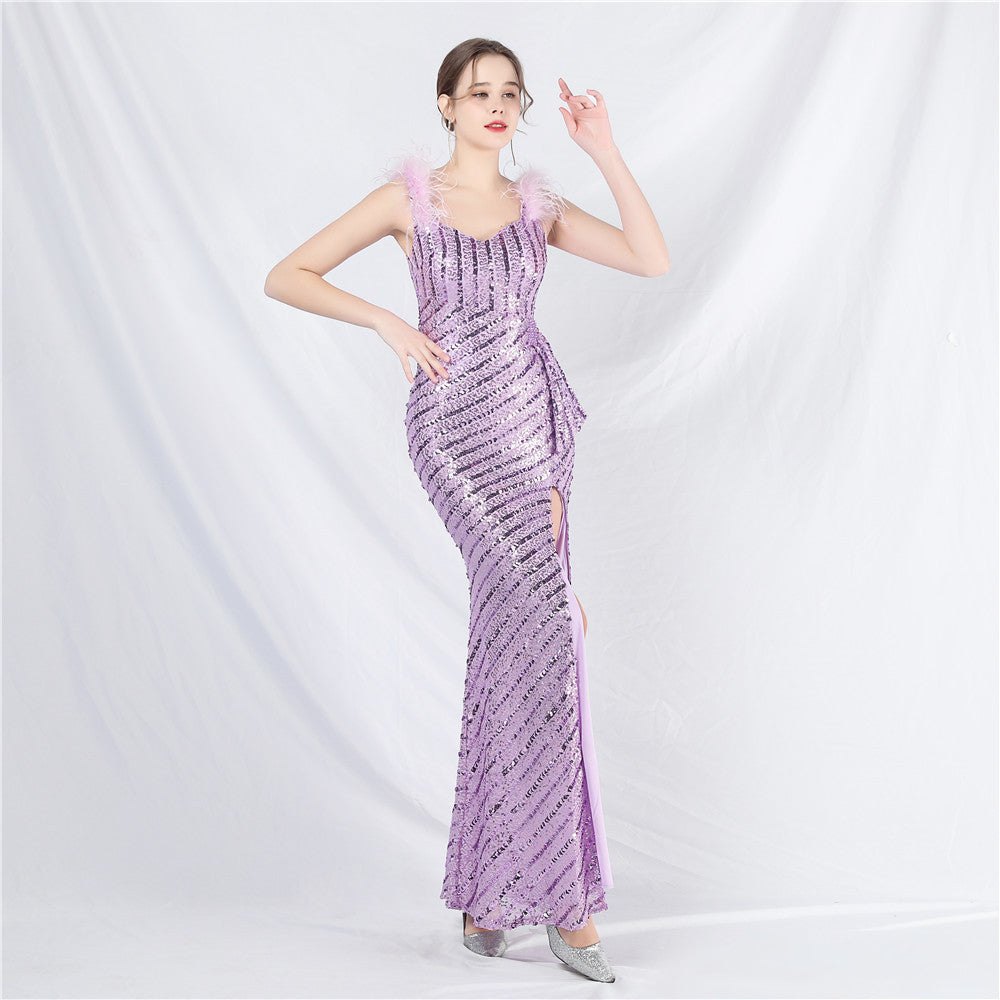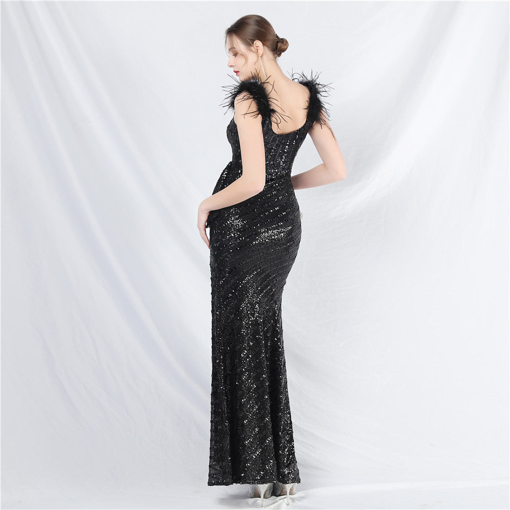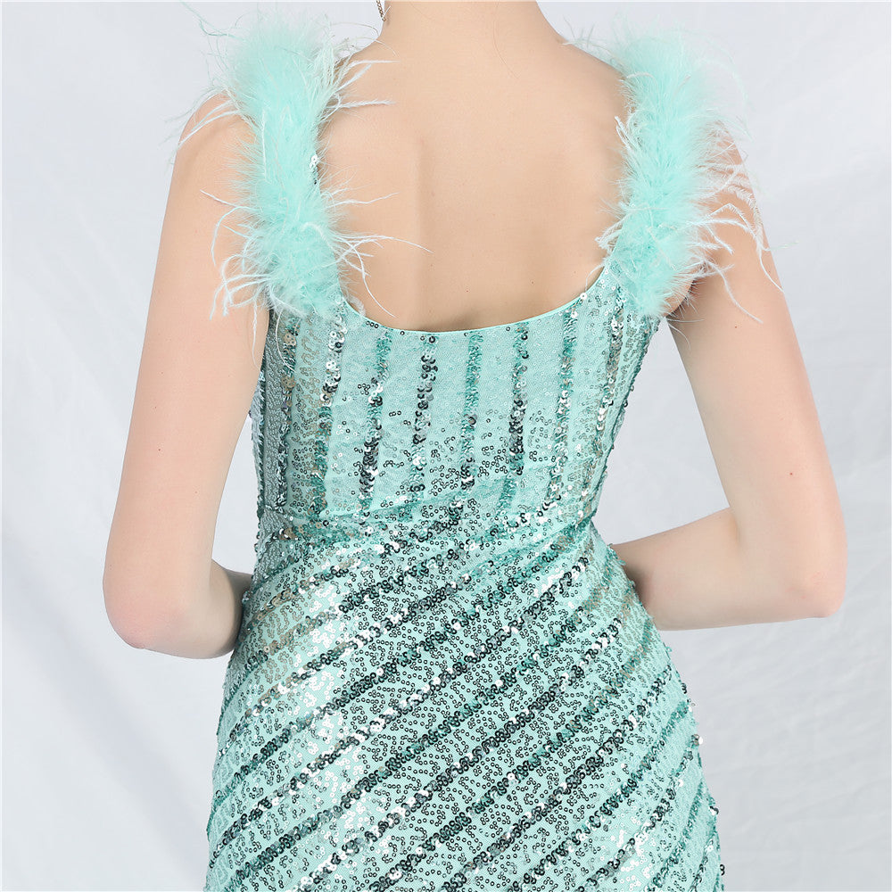 New craft sequins + beadwork + ostrich feather detailing, with chest pads.