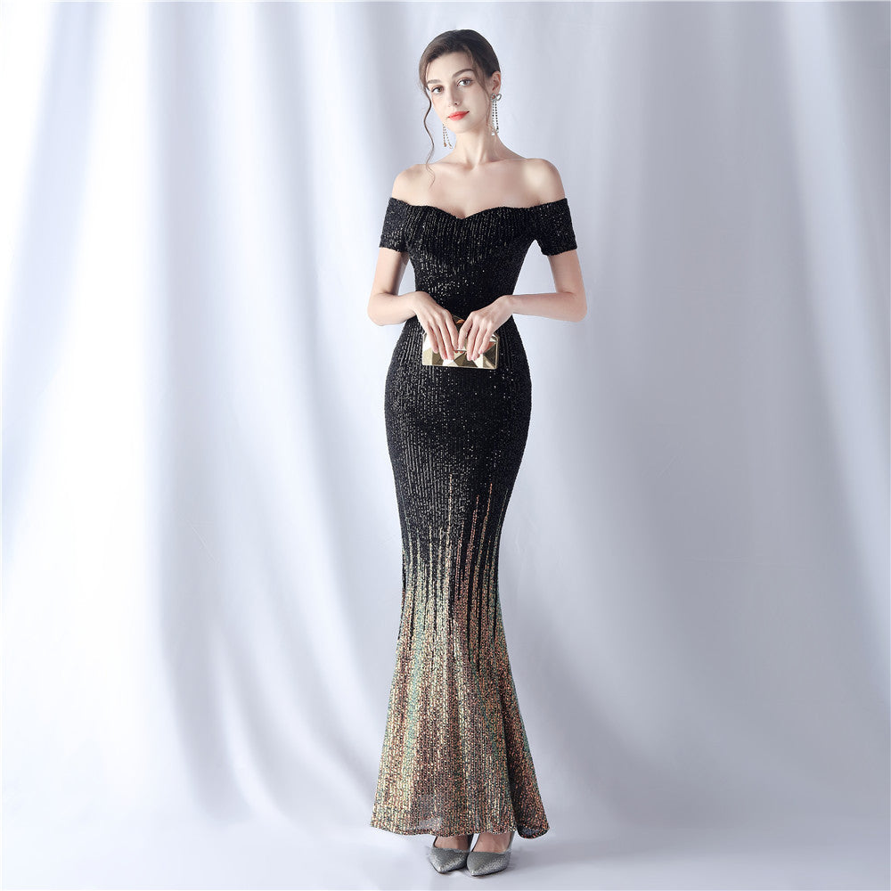 Gradient sequins + intricate mixed beadwork, with built-in chest pads