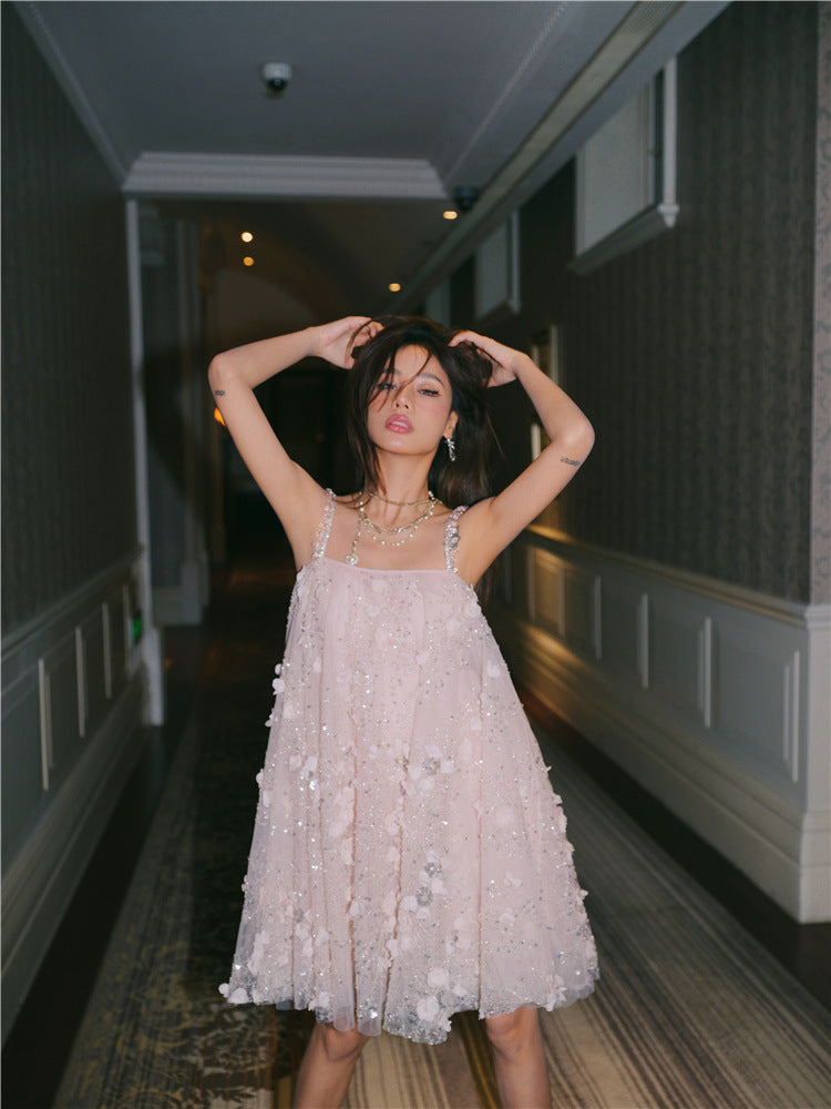 Zola Pink Flower Embroidered Loose doll Party Dress