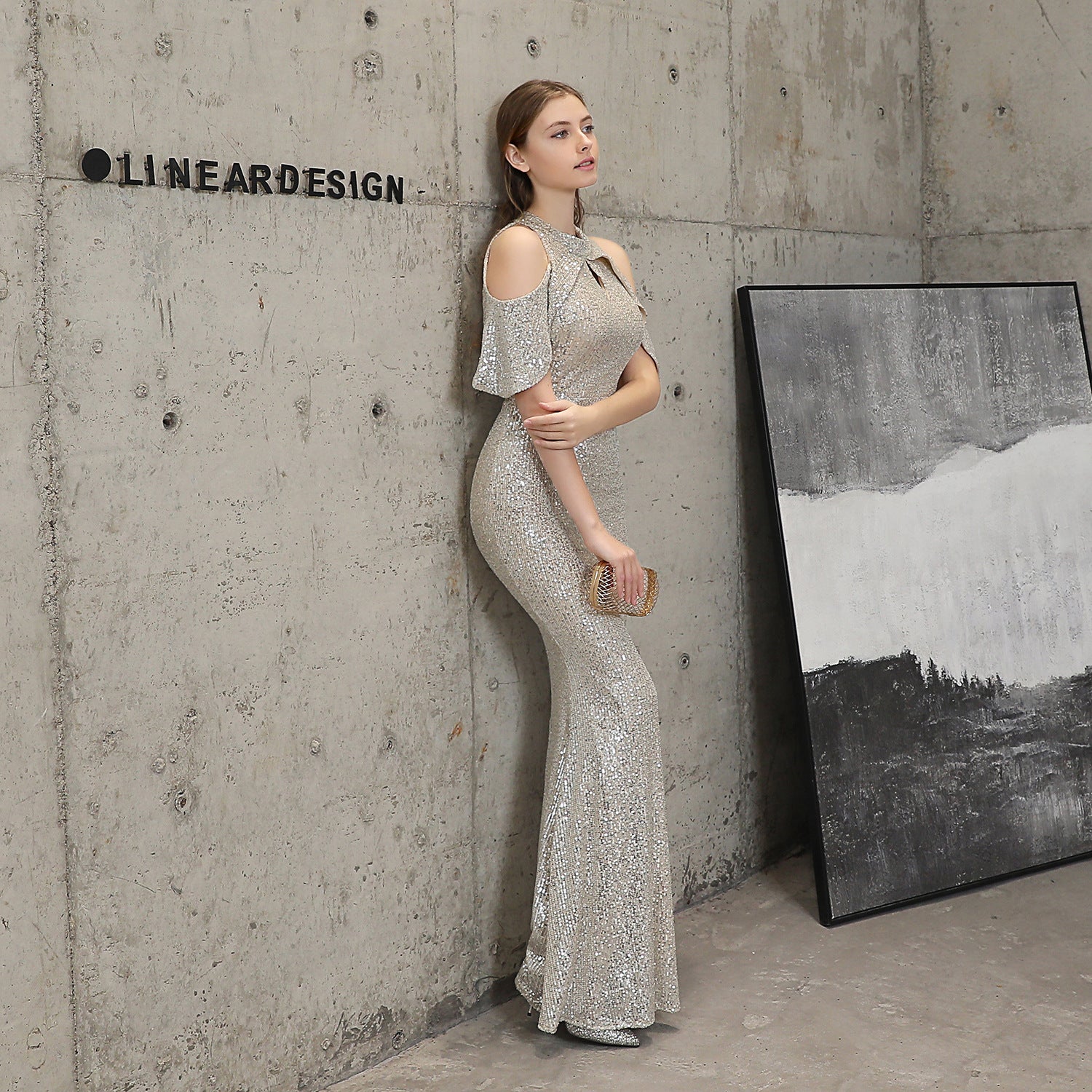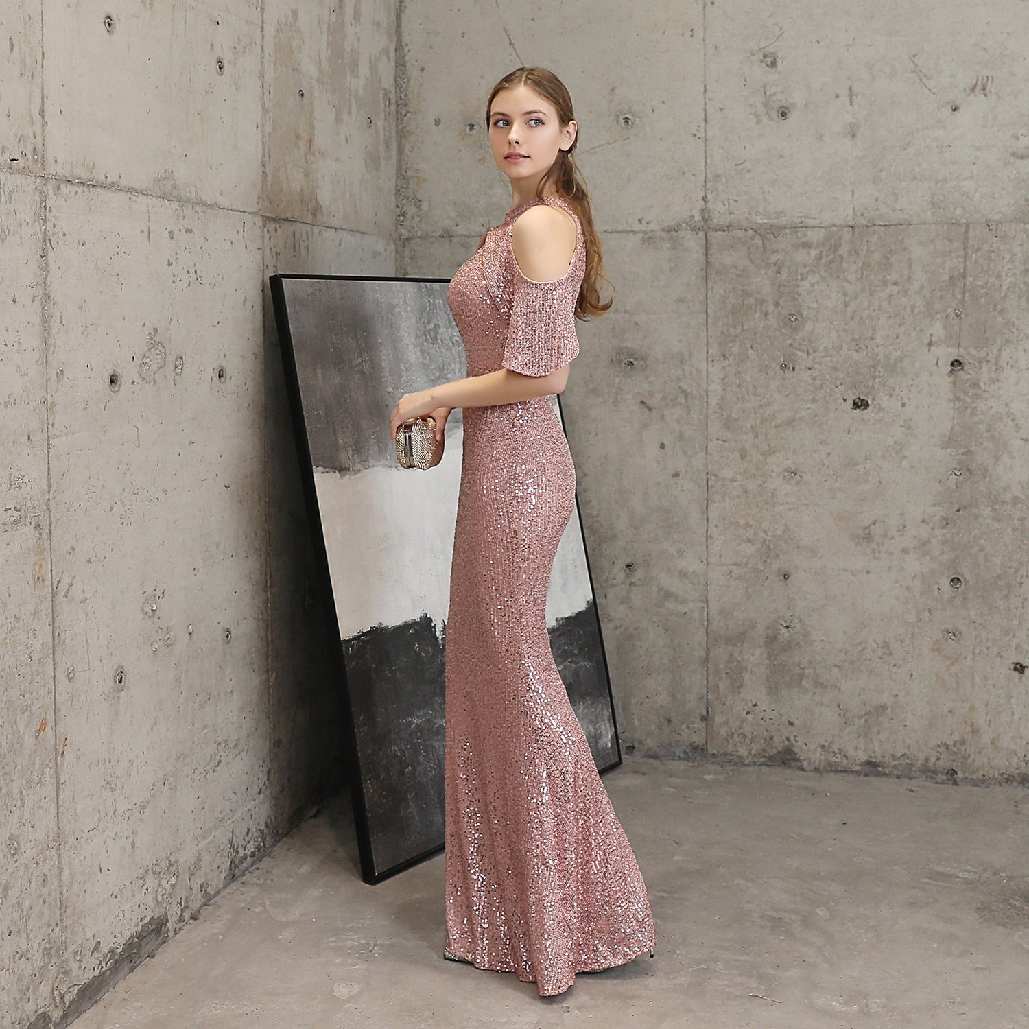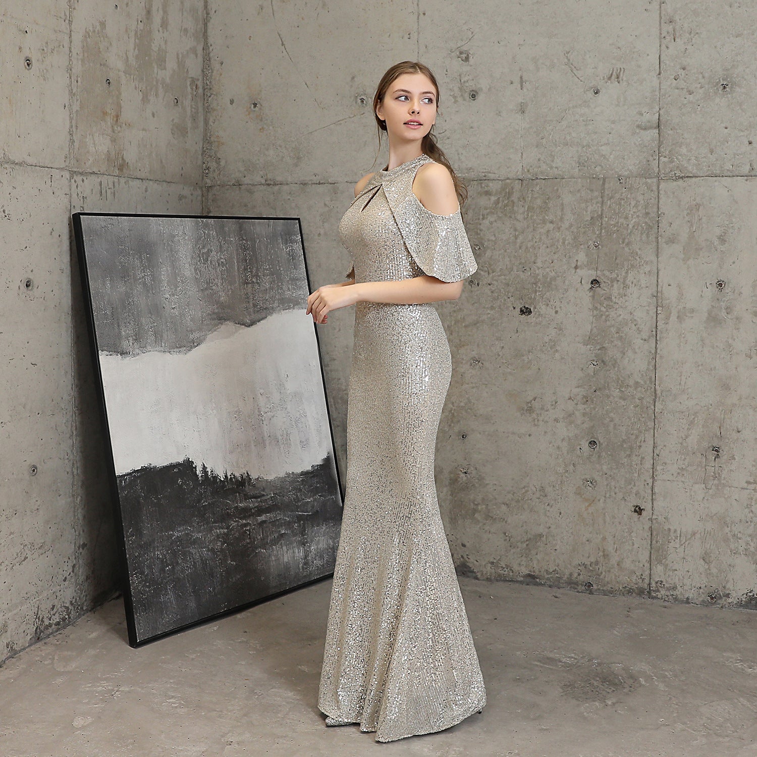 Short Sleeve Sequin Formal Dress