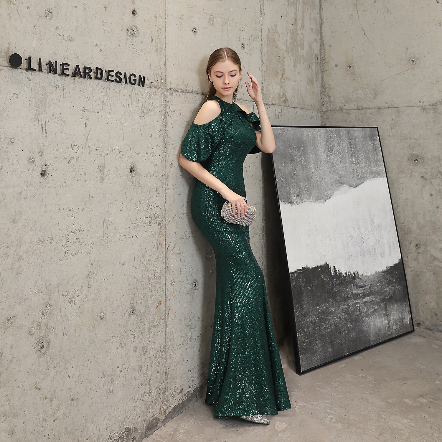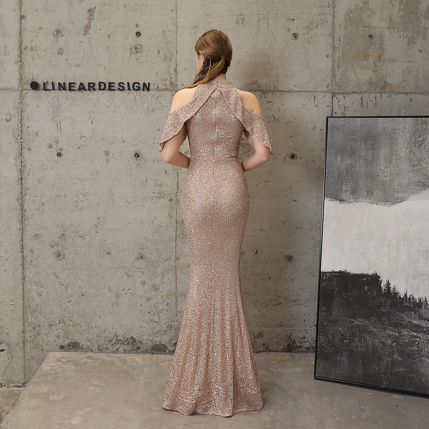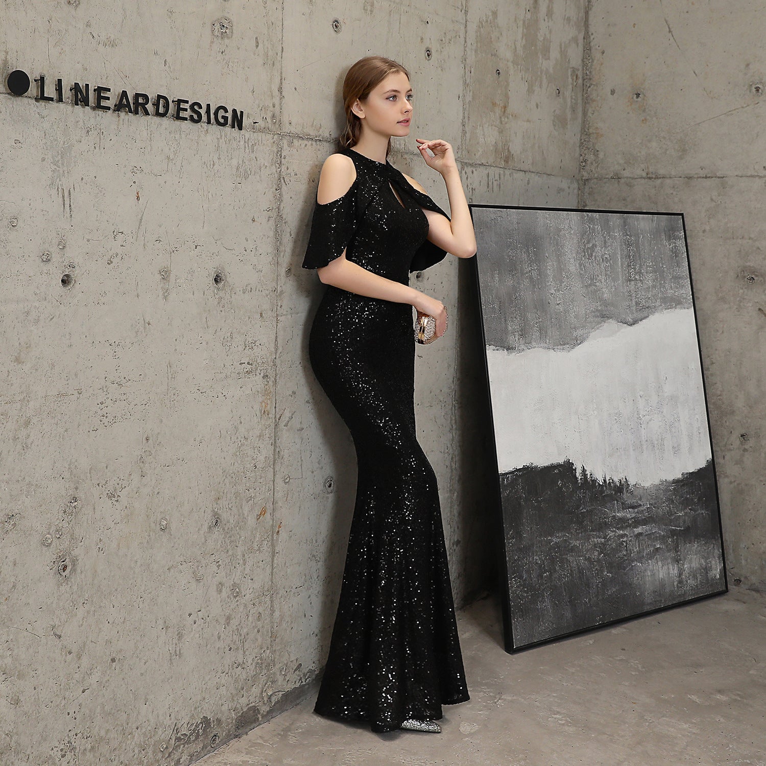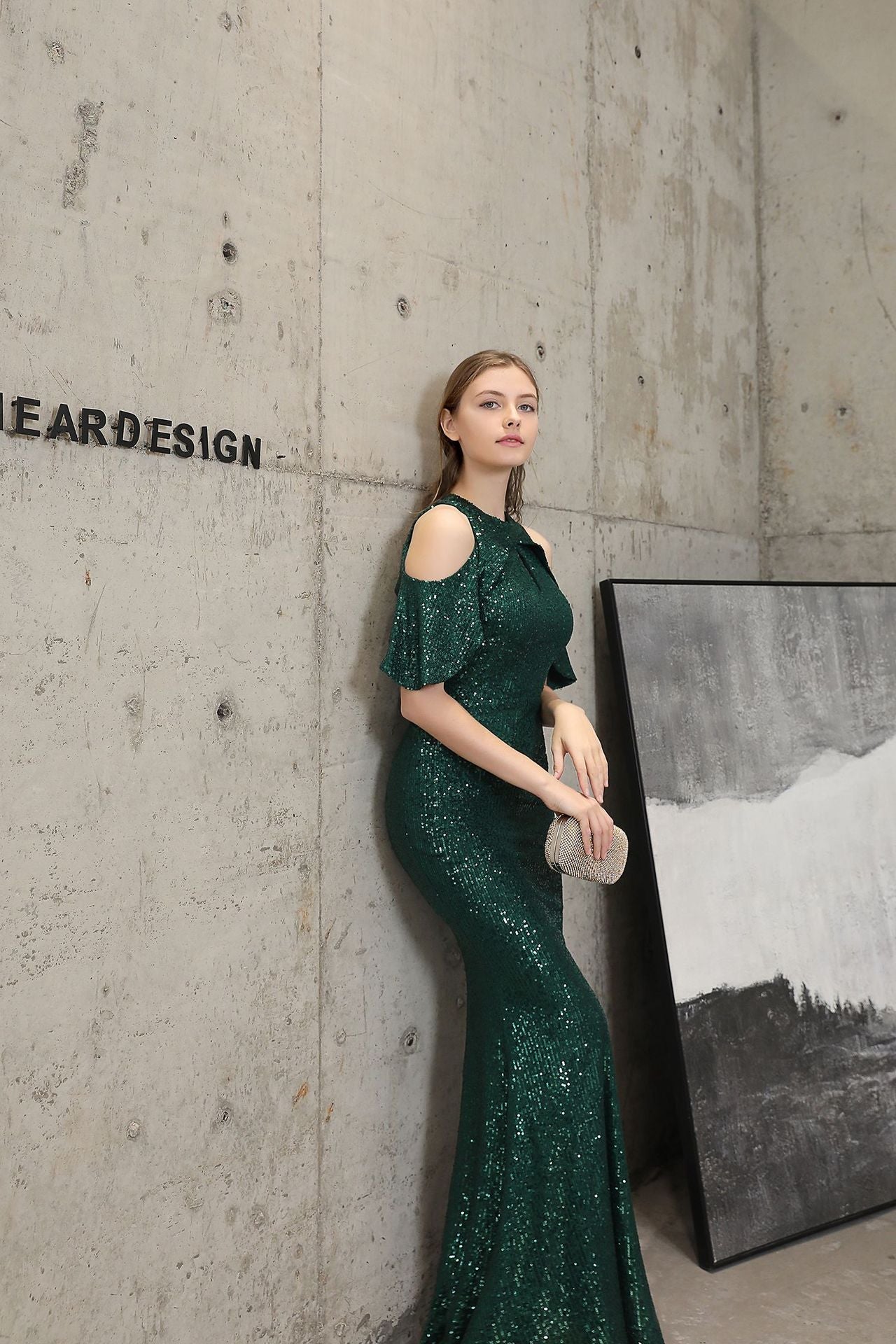 Short Sleeve Sequin Formal Dress