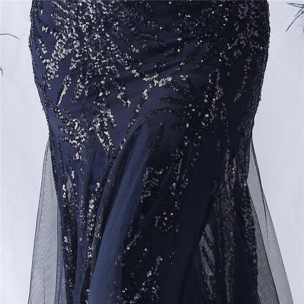 Ostrich Fur Mesh Beaded Formal Dresses