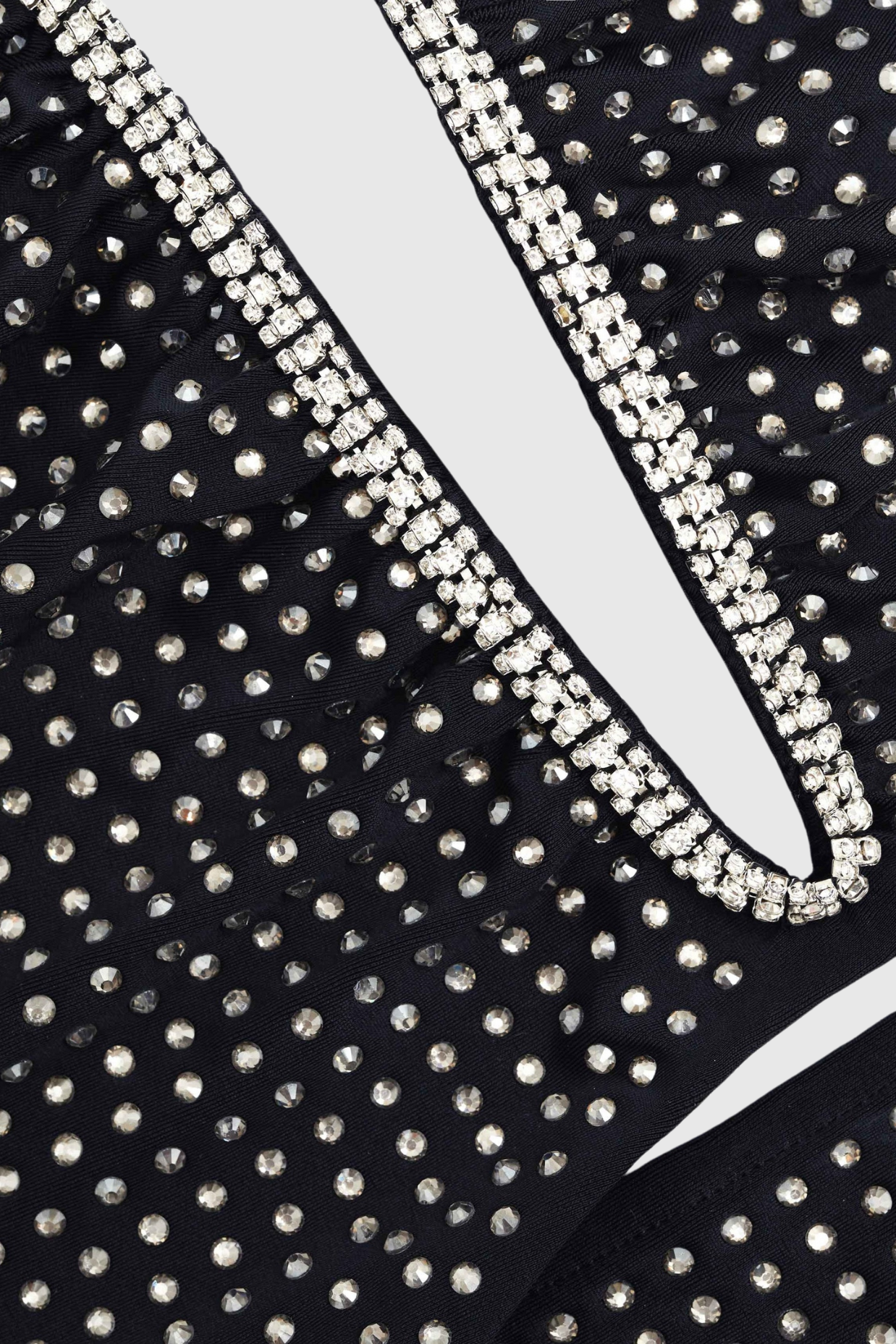 Abito lungo con fasciatura e cristalli senza spalline Addax