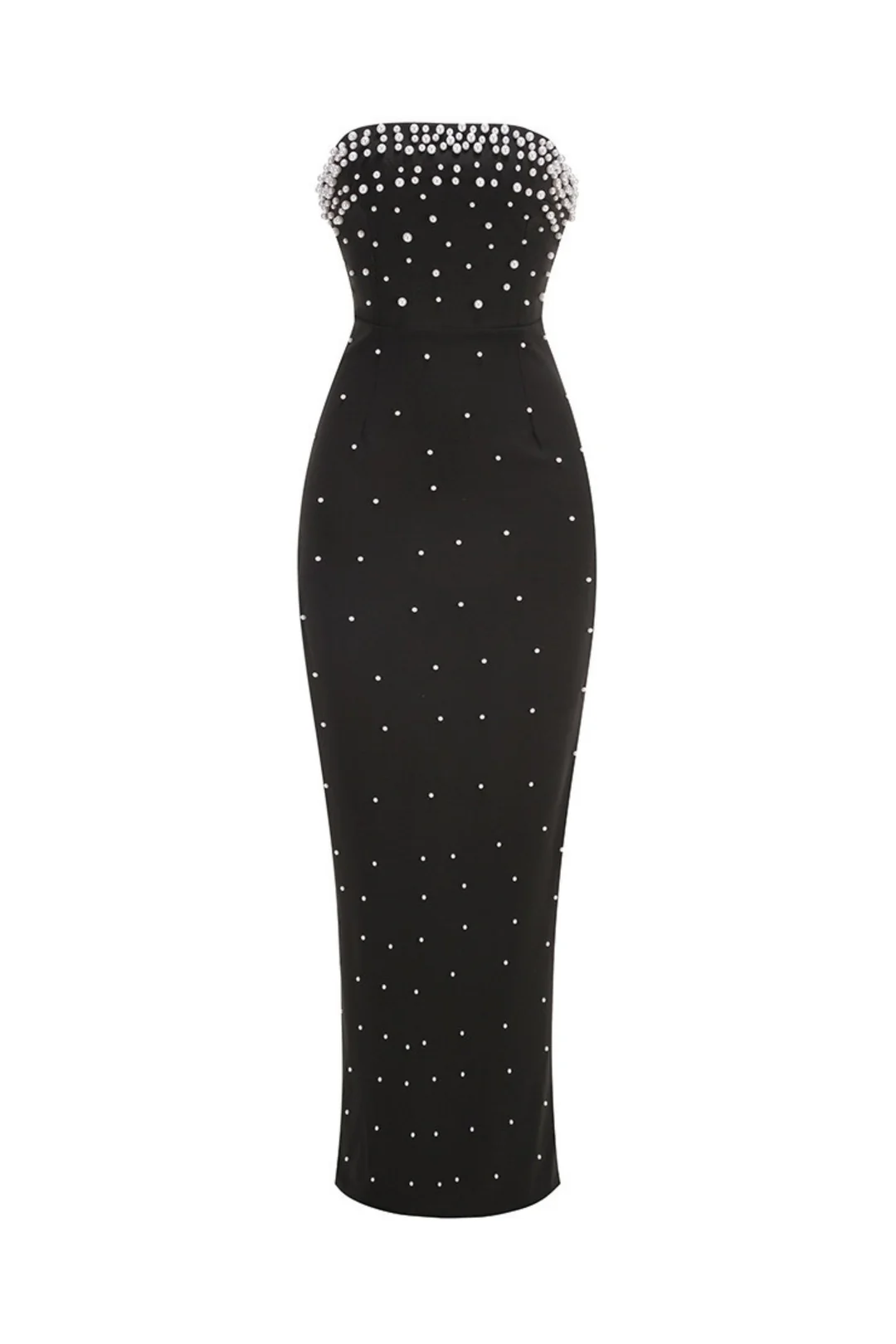 Le eleganti perle aggiungono un tocco di raffinatezza allo splendido design senza spalline. Perfetto per qualsiasi occasione formale, questo abito ti farà sentire sicura di te e bellissima. Esalta il tuo stile con questo capo mozzafiato!