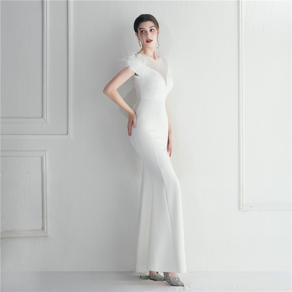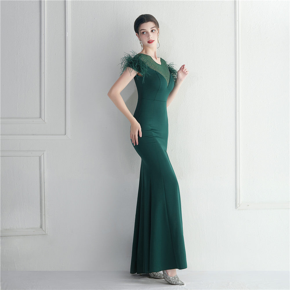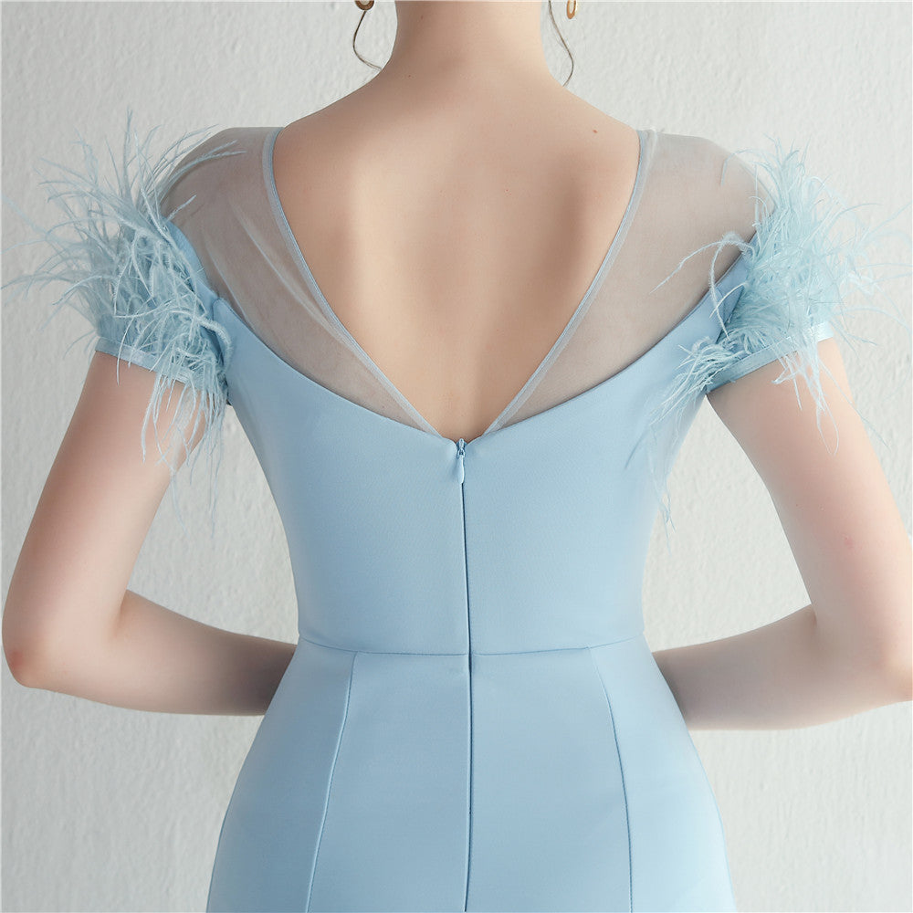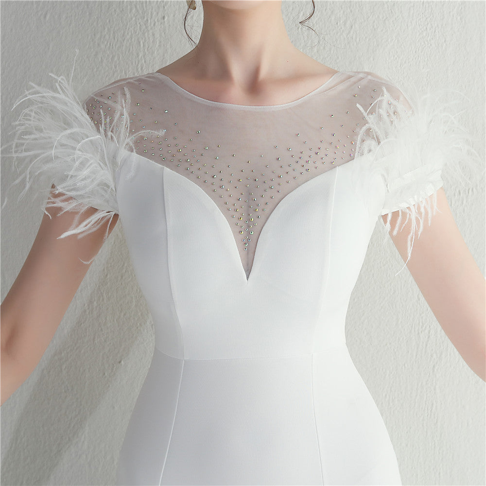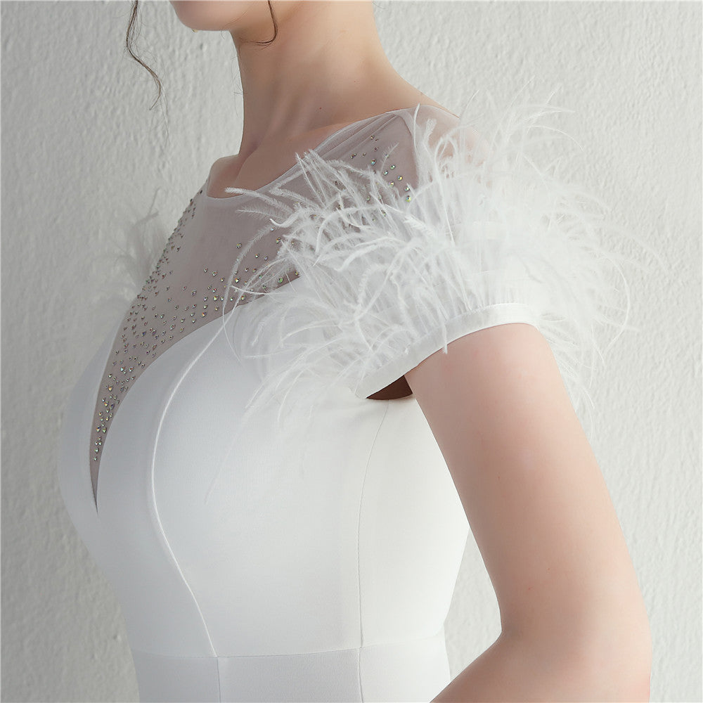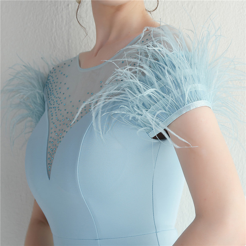 ラインストーン装飾のフェザーフォーマルドレス