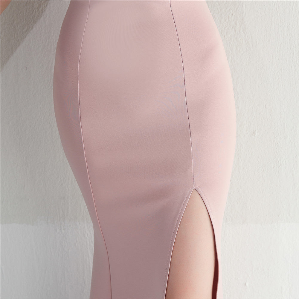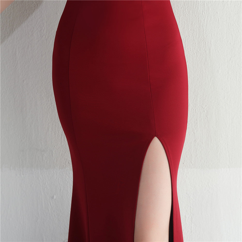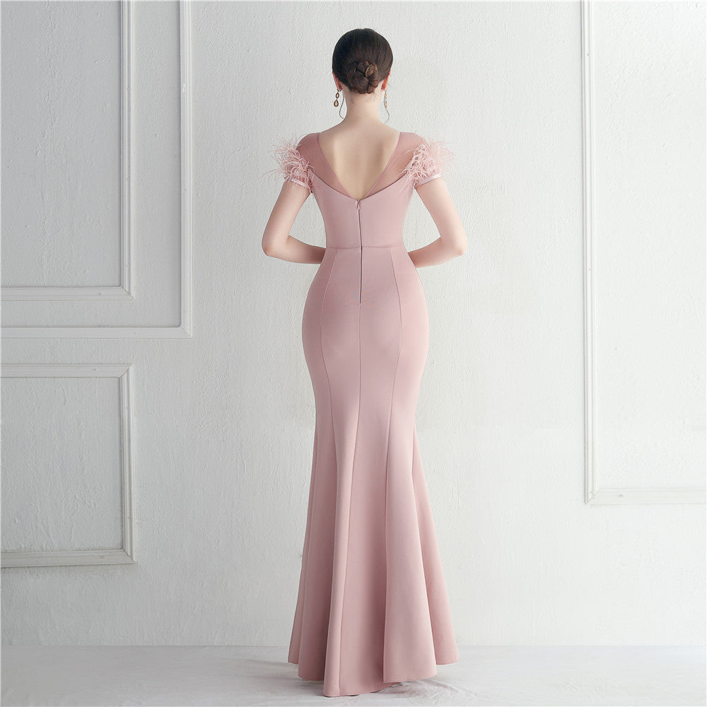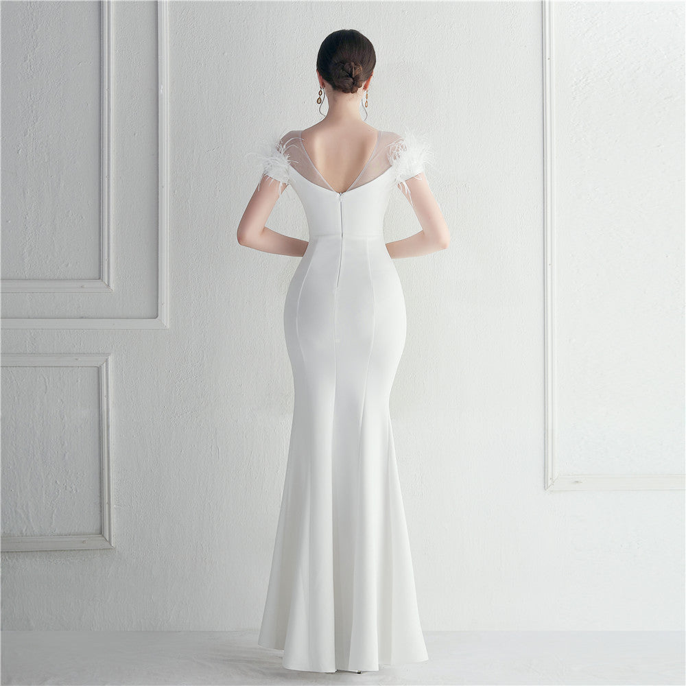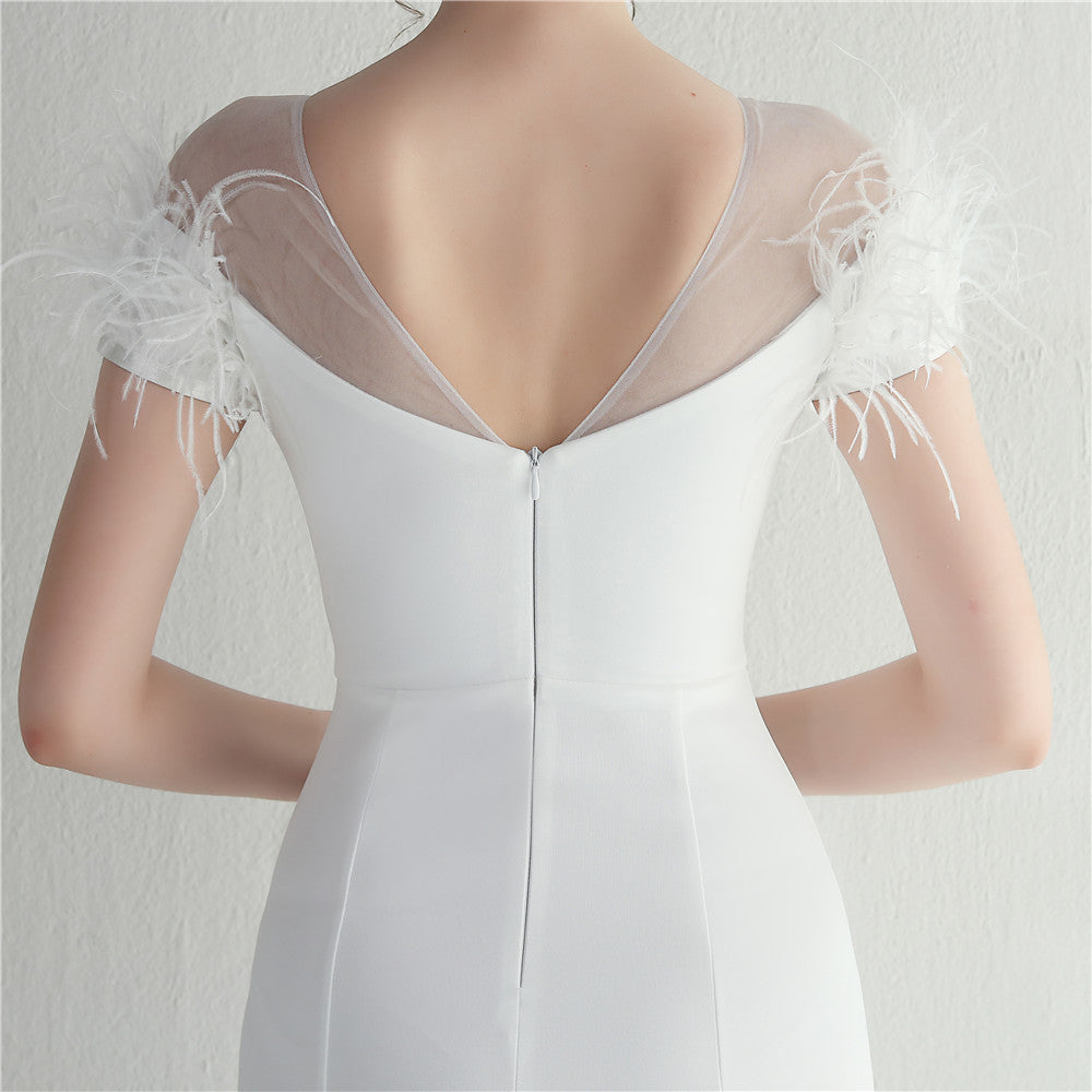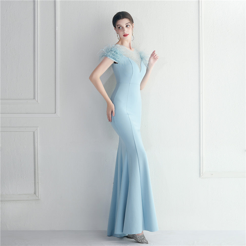 ラインストーン装飾のフェザーフォーマルドレス
