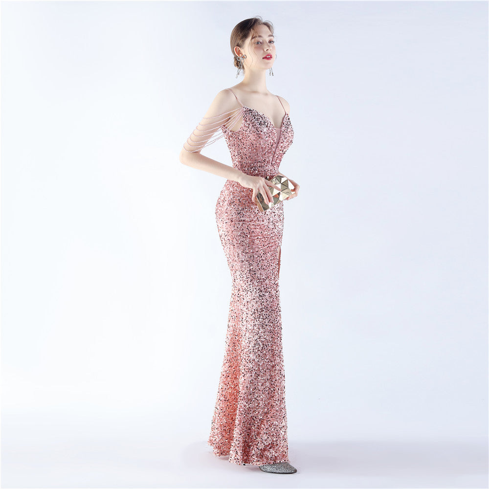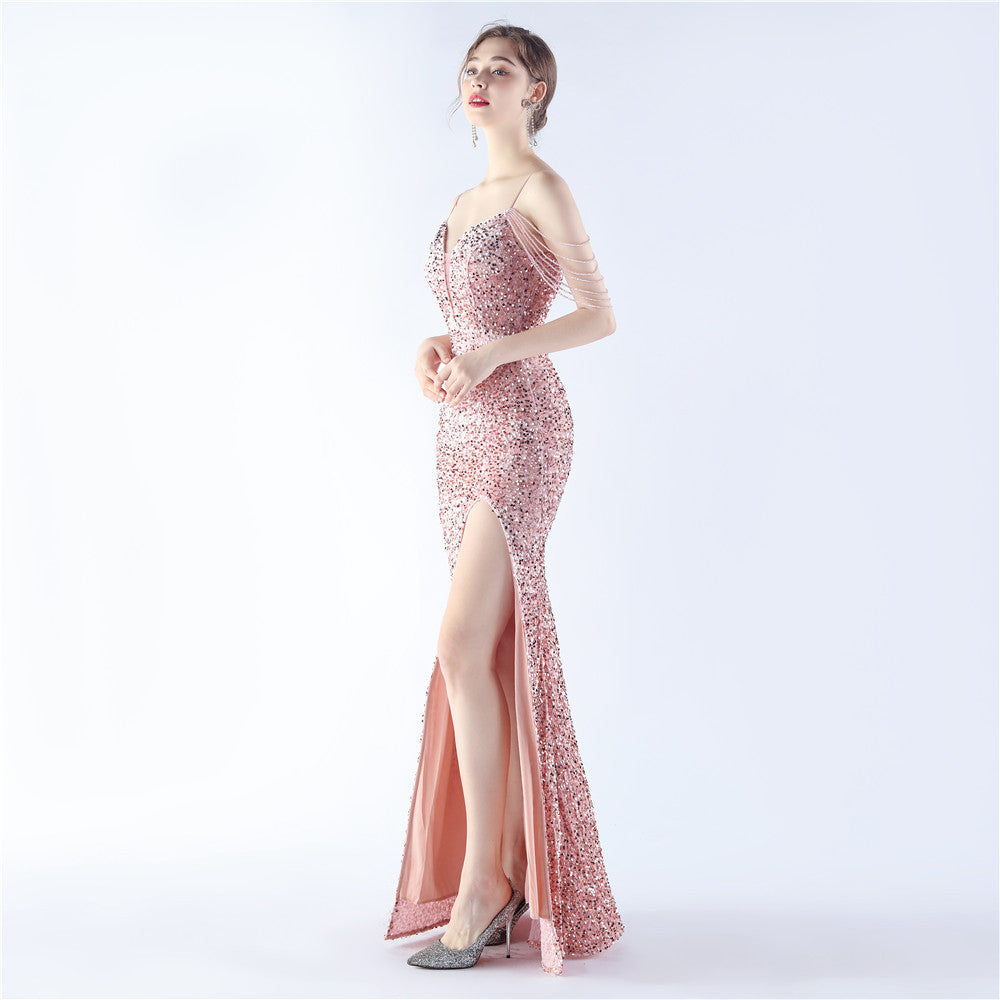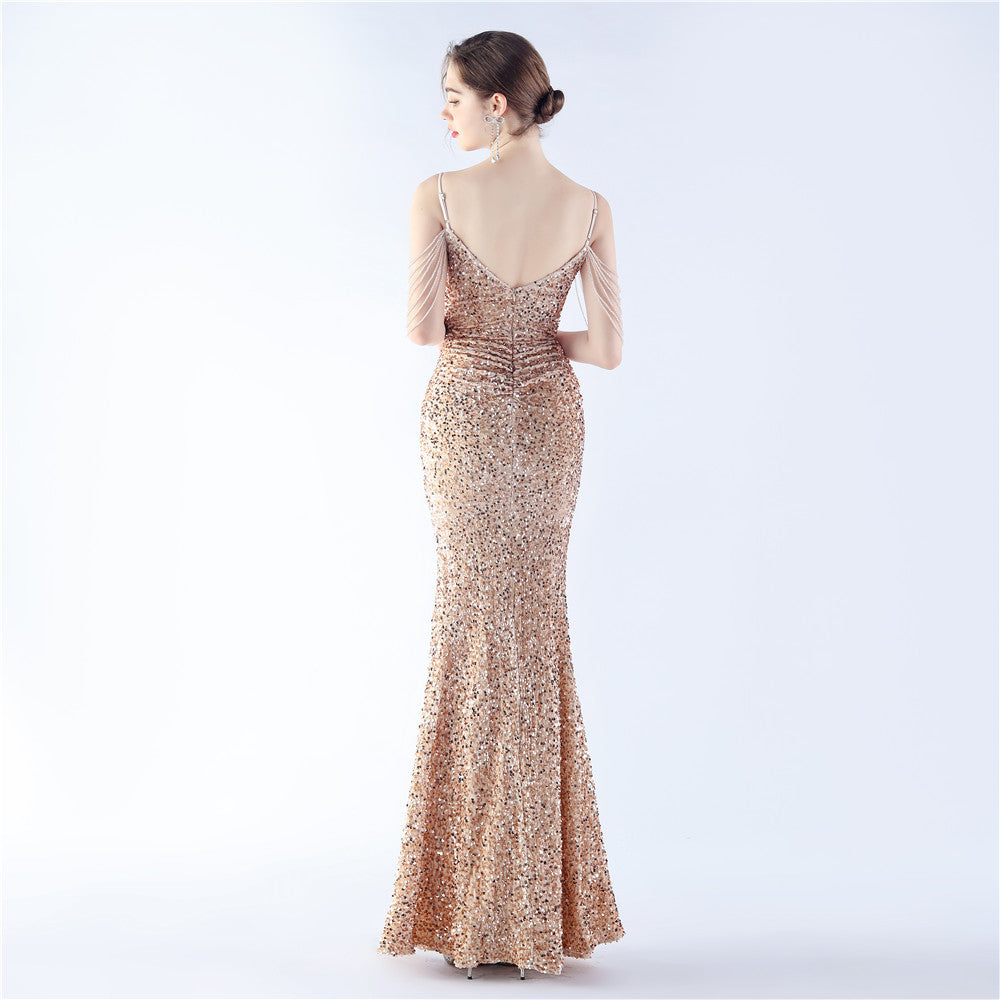 ベルベットの裏地と手作業でビーズをあしらったフォーマルドレス