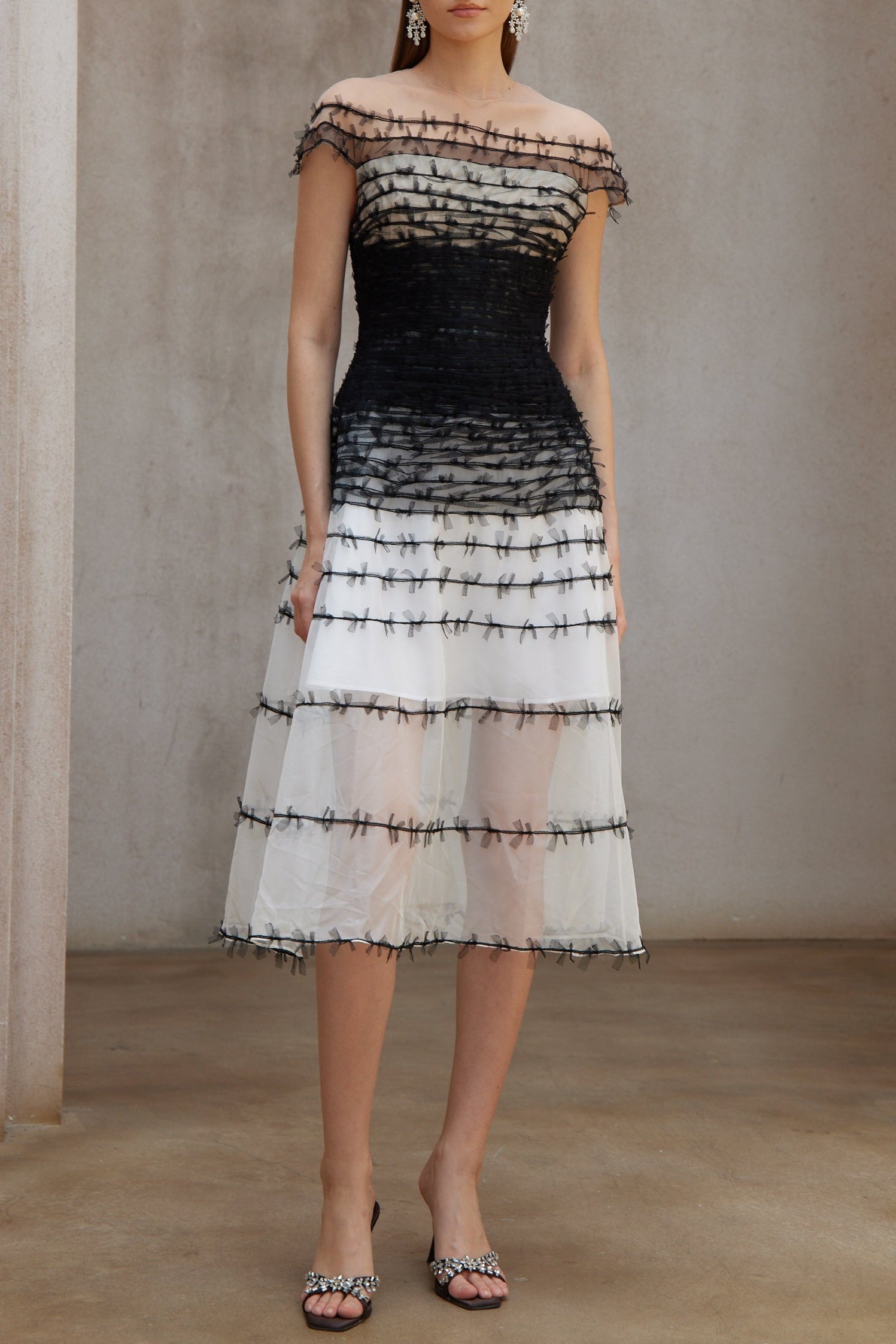 ジェニファー オフショルダー レース刺繍 ホロー マキシドレス(ブラック)