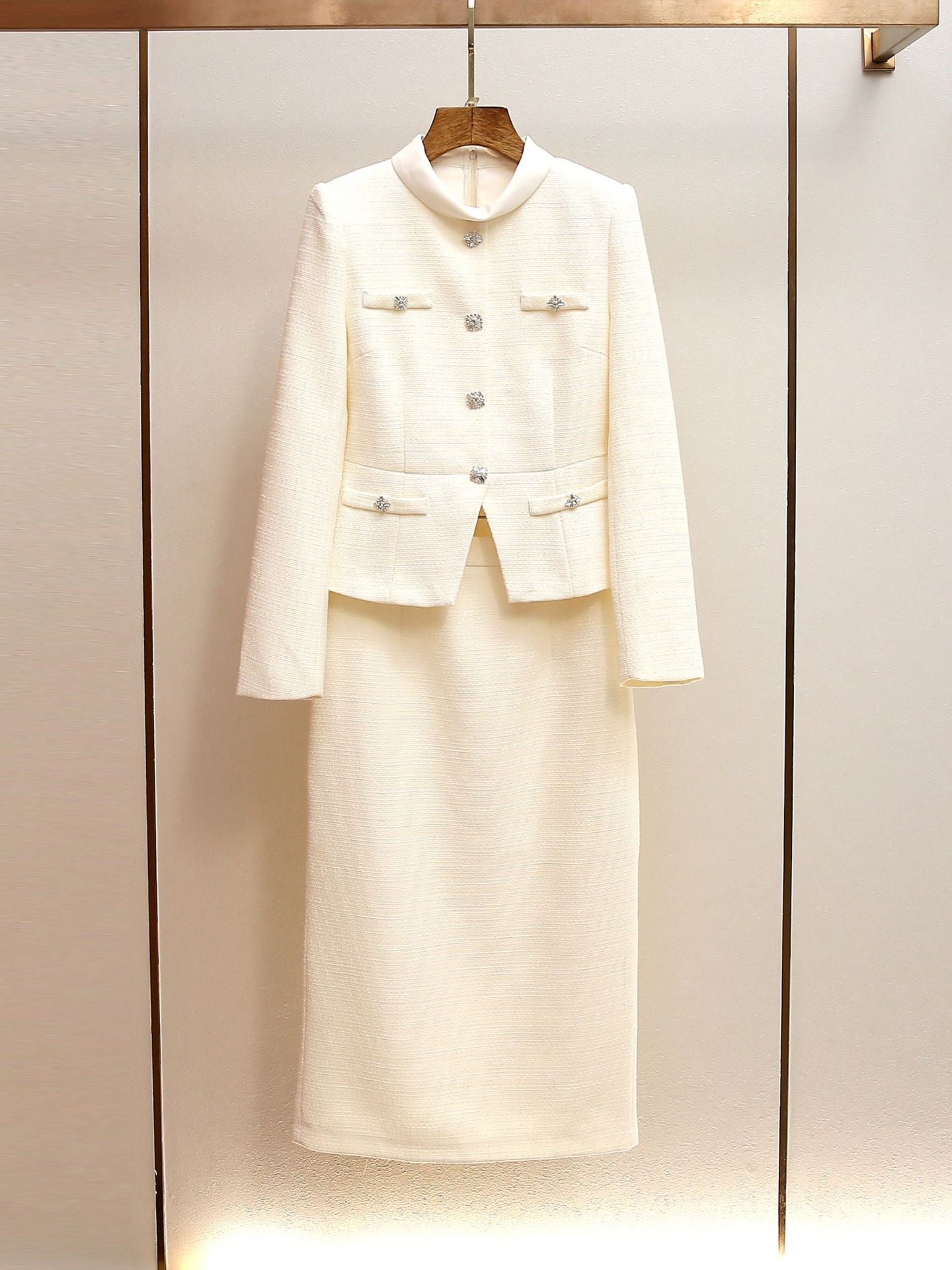 ミカエリア クリームブークレ テーラードミディドレスセット