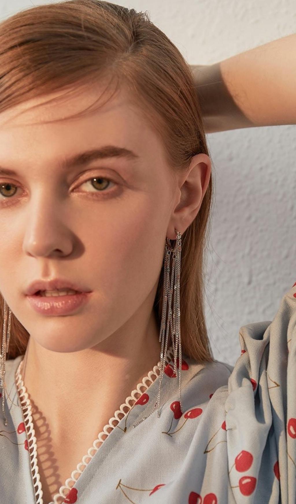 GOLD HEART-SHAPED TASSEL EARRINGS