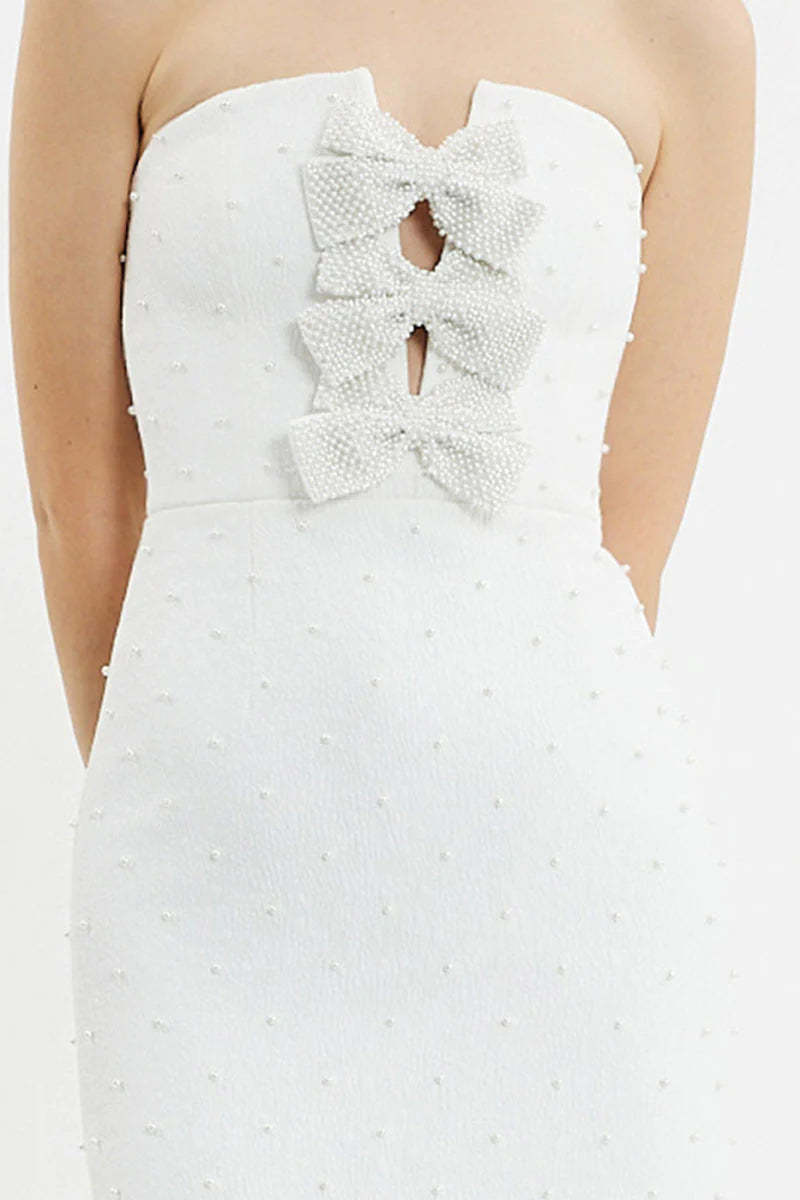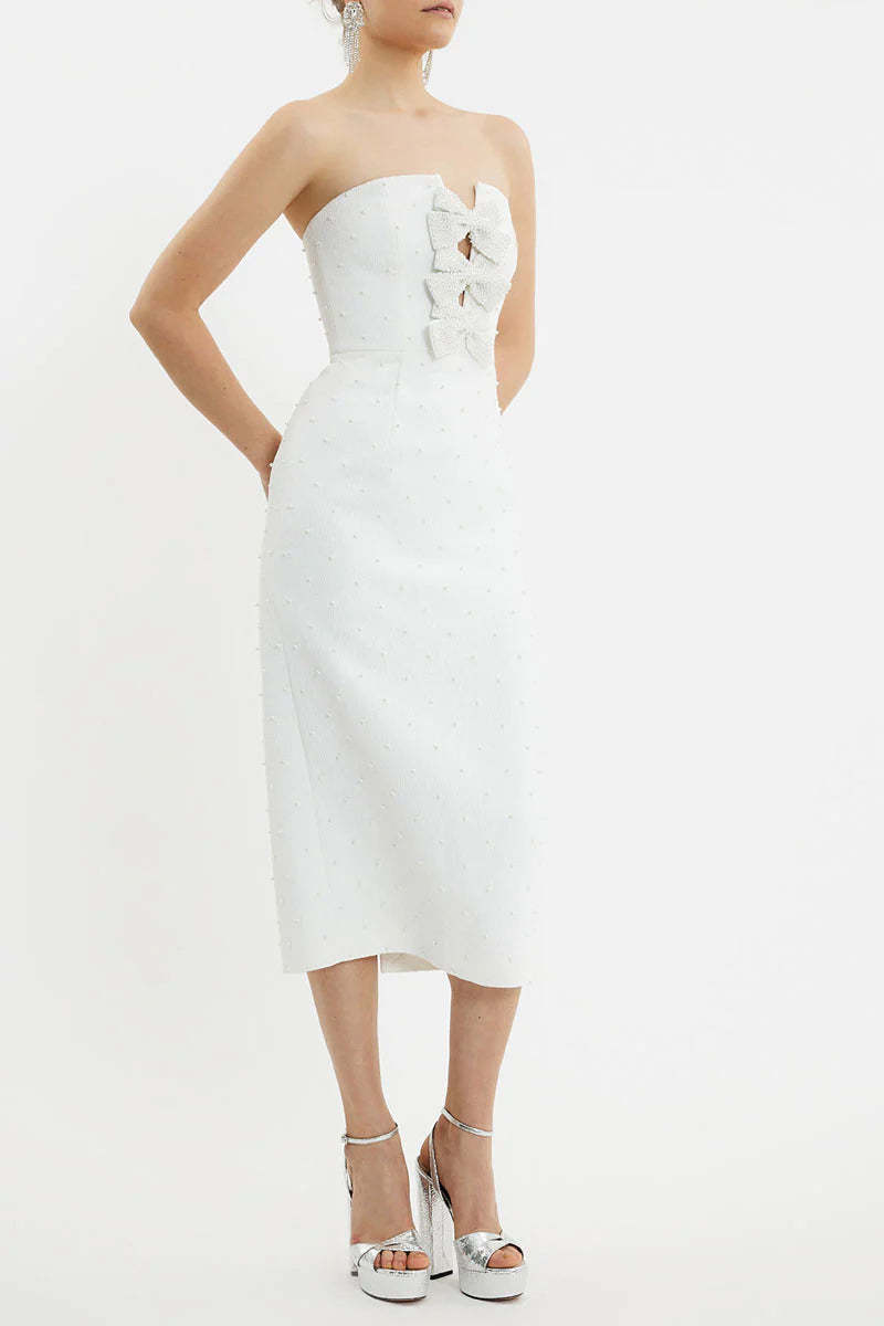 nancy pearl embellished bow midi dress in ivory
