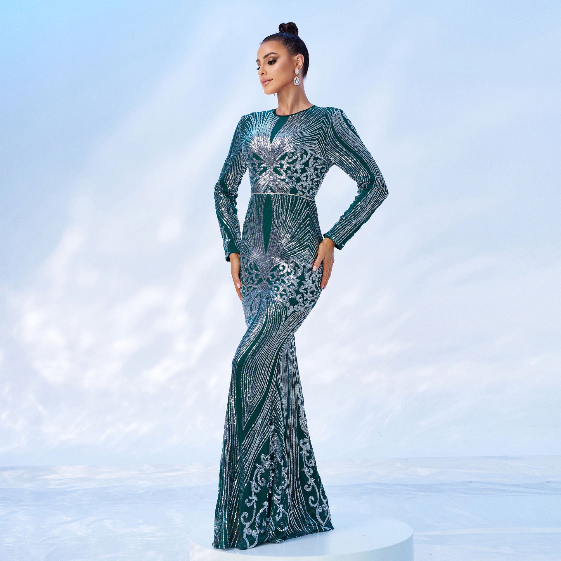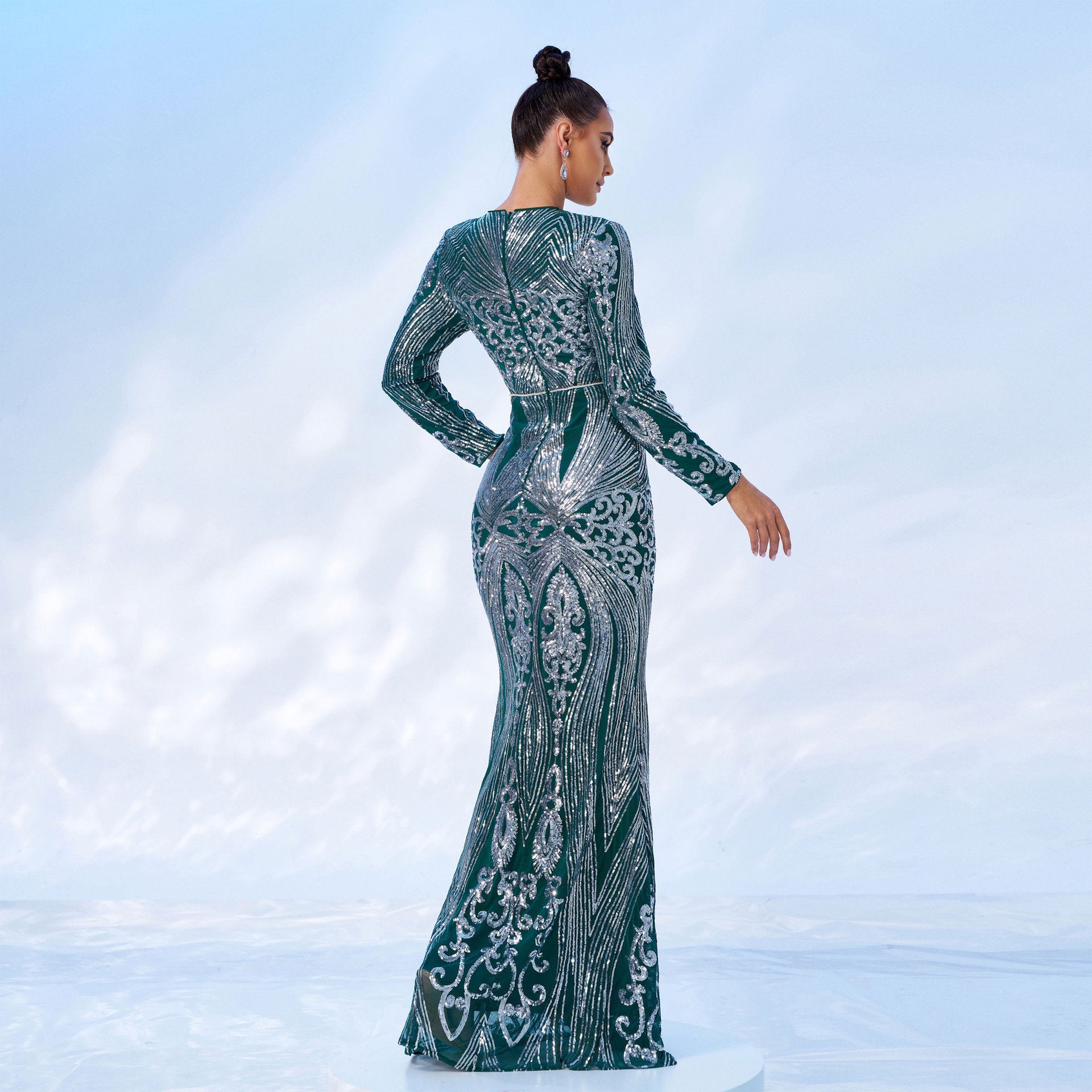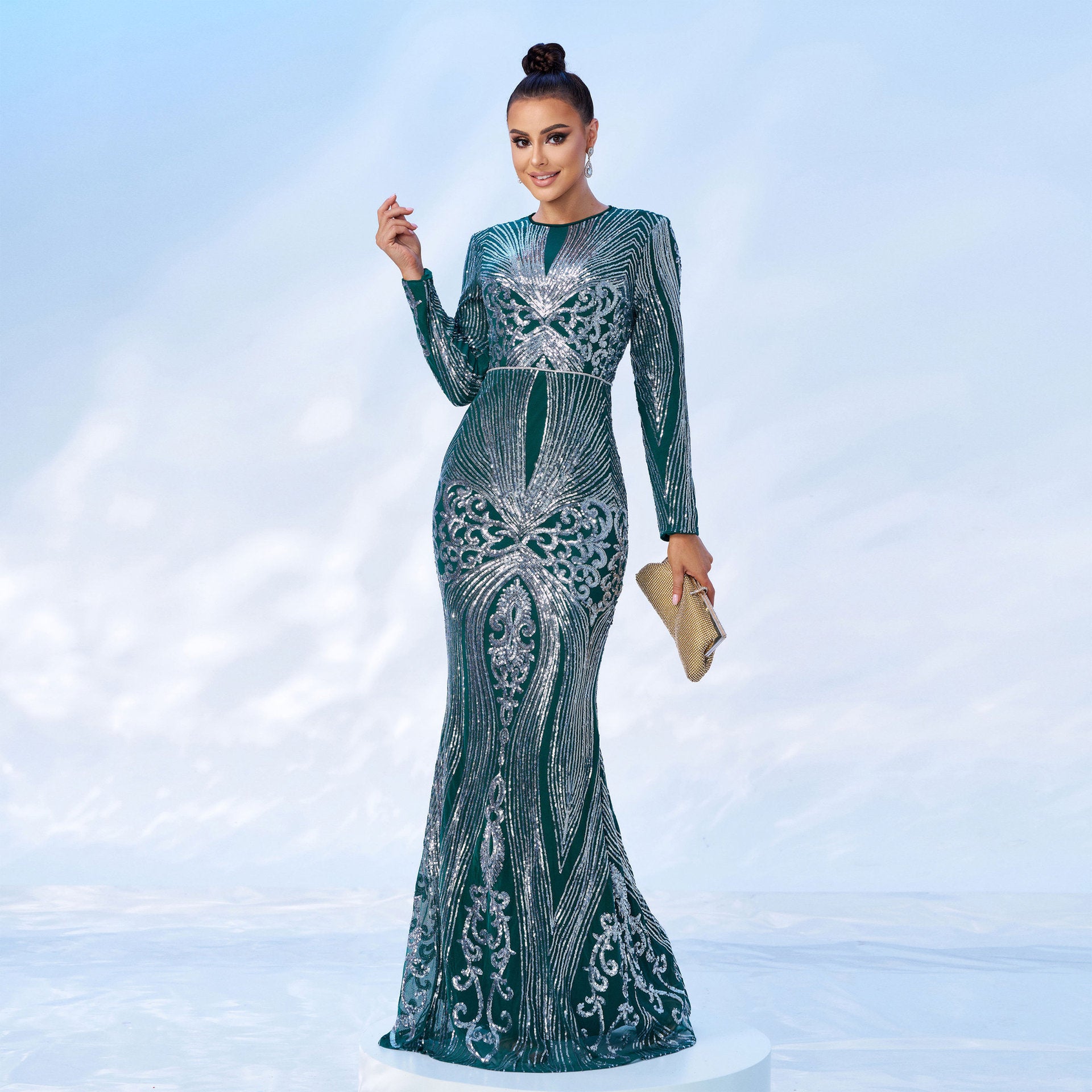 winifred sequin print long sleeve maxi dress in green